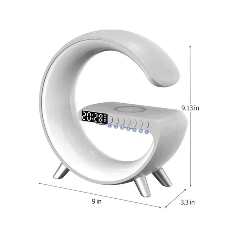 شحن لاسلكي سريع 15W، مصباح إضاءة محيطية، مصباح جانبي، تأثير إضاءة مبهر، صوت بلوتوث، تشغيل مكبر صوت و AUX و TF، بالإضافة إلى الساعة والإنذار.